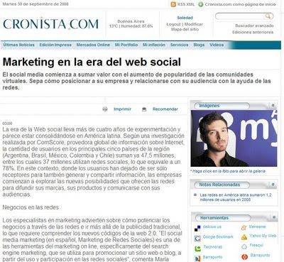 Les acerco este artículo sobre Marketing en Redes Sociales, publicado en el diario El Cronista en el suplemento de IT Business.